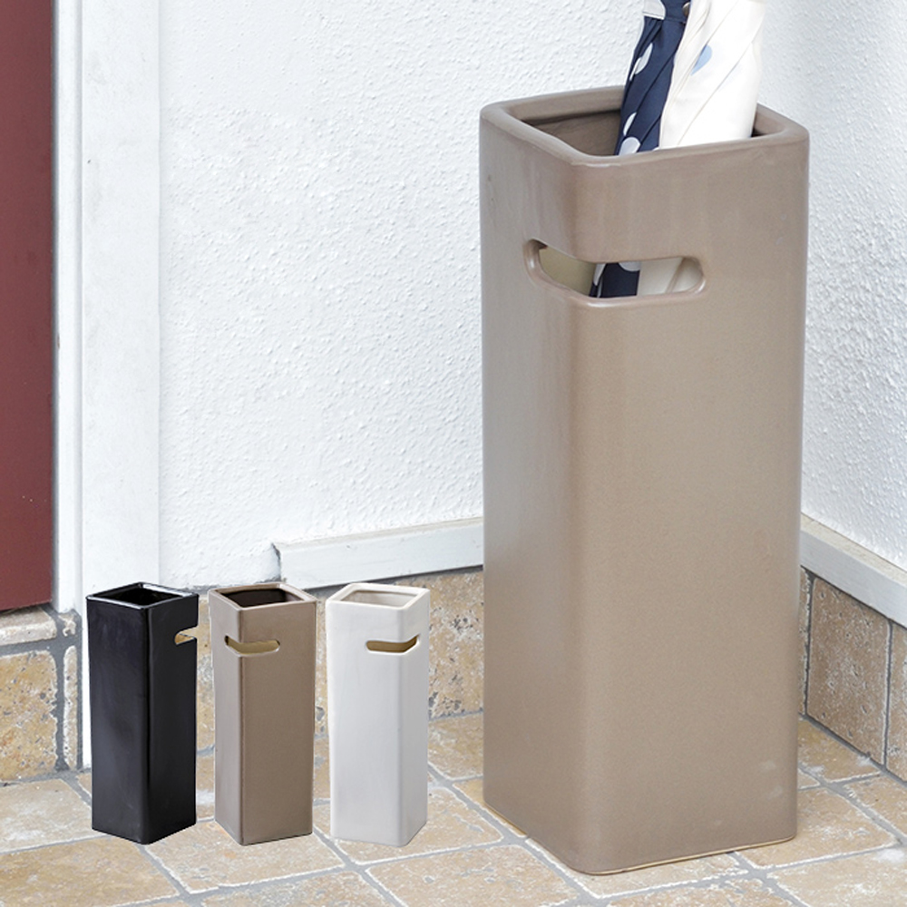 高級感のある陶器製の、シンプルモダンなスクエアタイプ傘立て。